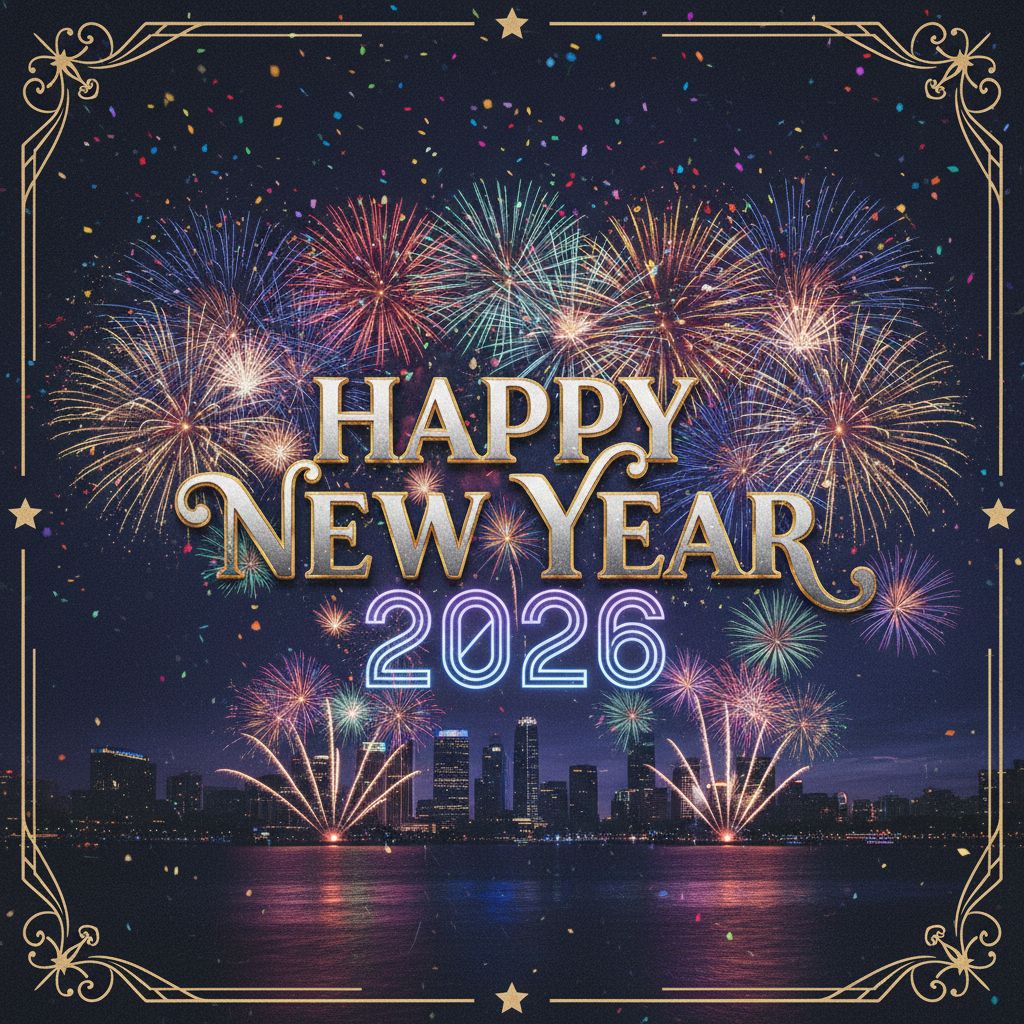 For generating a Happy New Year 2026 themed image in an AI image generator.